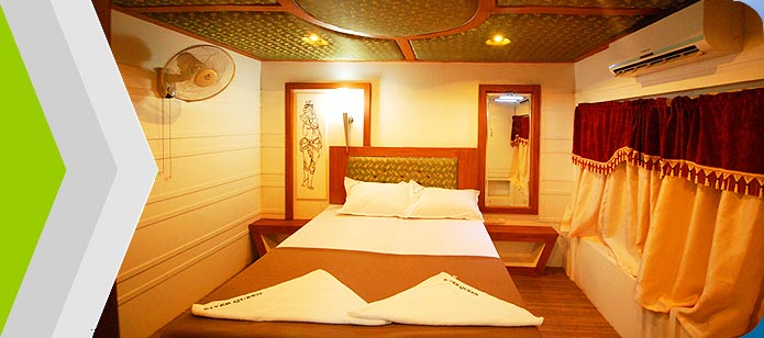 international standards in hygiene and decor. Complete with sundeck, corridor, lobby, bedrooms with attached bathrooms and kitchen to deliver the ultimate 'Home on Waves' feel. One bedroom to five bedrooms with or with our A/c have elegant wardrobes and dressing tables and separate provision for clean water. State-of-the-art kitchen equipped with food and Beverages stock and skilled cook offer delicious Kuttanadan cuisine with rice and fish curry. Boats with pollution control and waste management measures have conference halls, entertainment area with home theatre, facilities to enjoy fishing of cool breeze from the sheltered deck and a crew that speak five different languages. |